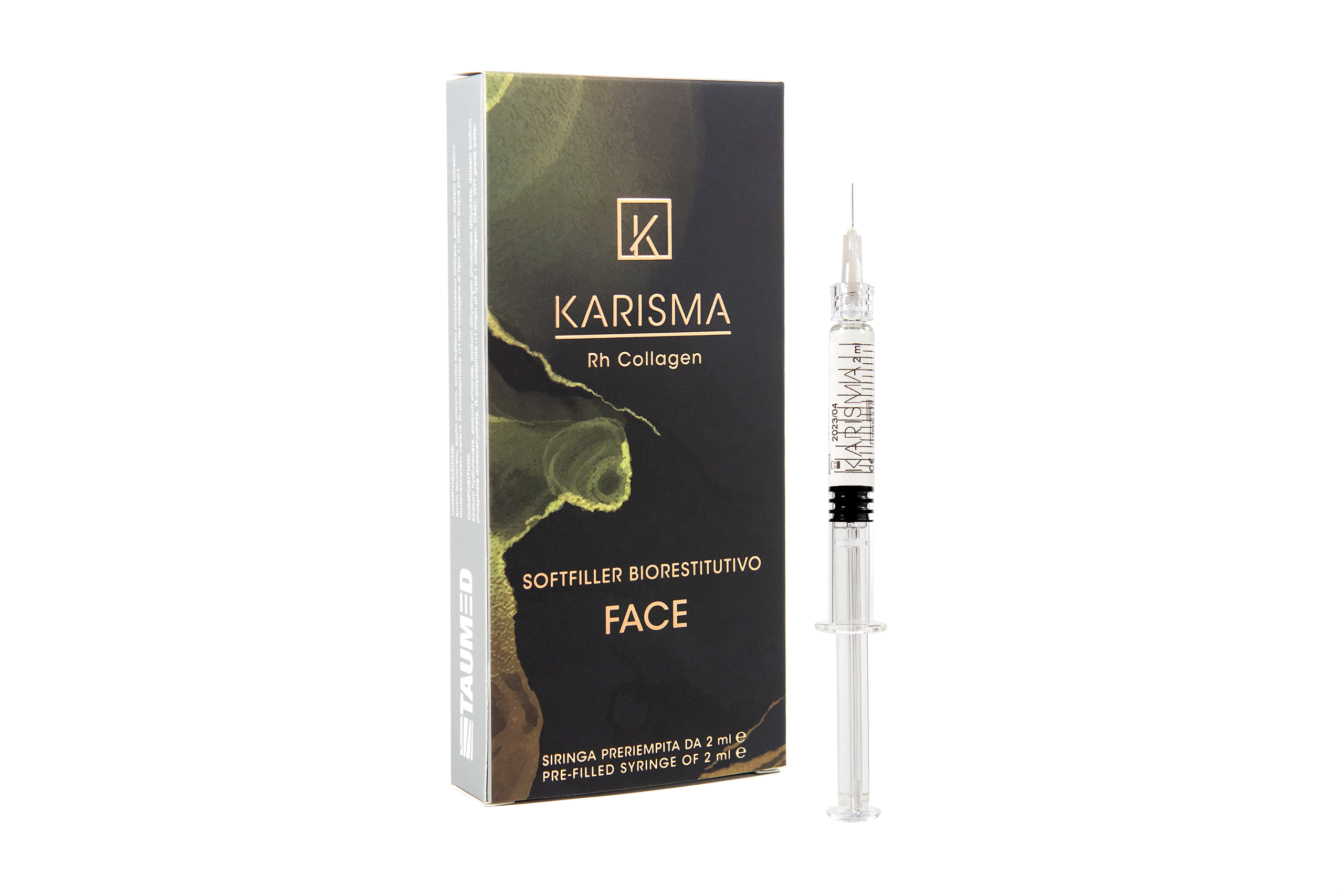 KARISMA Rh Collagen® is an injectable – MD Class III, re-absorbable and bio-replenishing medical device, it is the first pure injectable Recombinant Human Collagen Type 1 (Rh Collagen) in the world, as it naturally restores pre-aging conditions, acting on the rejuvenation of the extracellular matrix ,this is guaranteed by a studied and calibrated dosage of its ingredients allowing a long lasting and prolonged effect to a novel patented natural human collagen precursor (collagen polypeptidic a 1 chain R) promotes the production of type I collagen in dermal human fibroblasts.