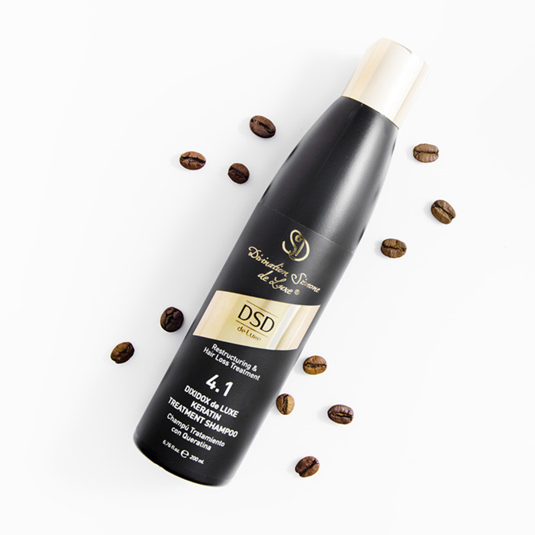 DIXIDOX DE LUXE KERATIN TREATMENT SHAMPOO. Double-action shampoo helps reduce hair loss and improve its structure. It contains a high concentration of hair growth stimulating ingredients such as caffeine, placenta extract, royal jelly, plant extracts, and nanoliposome-encapsulated adenosine, ingredients that improve the microcirculation of the scalp such as capsaicin, and ingredients to restore damaged hair such as keratin hydrolyzed, hydrolyzed collagen and vitamins. After the treatment, the hair regains its shine, strength, and volume.