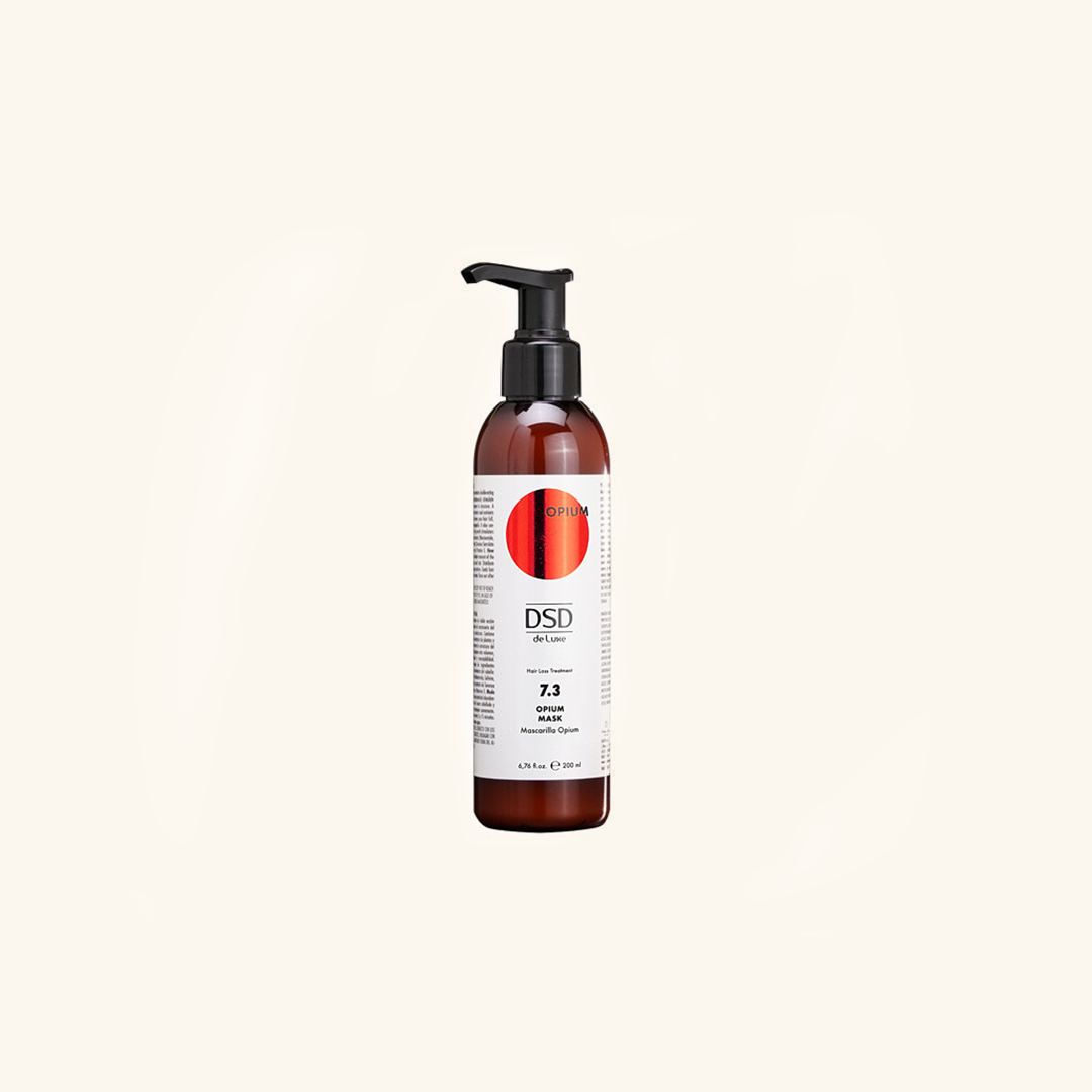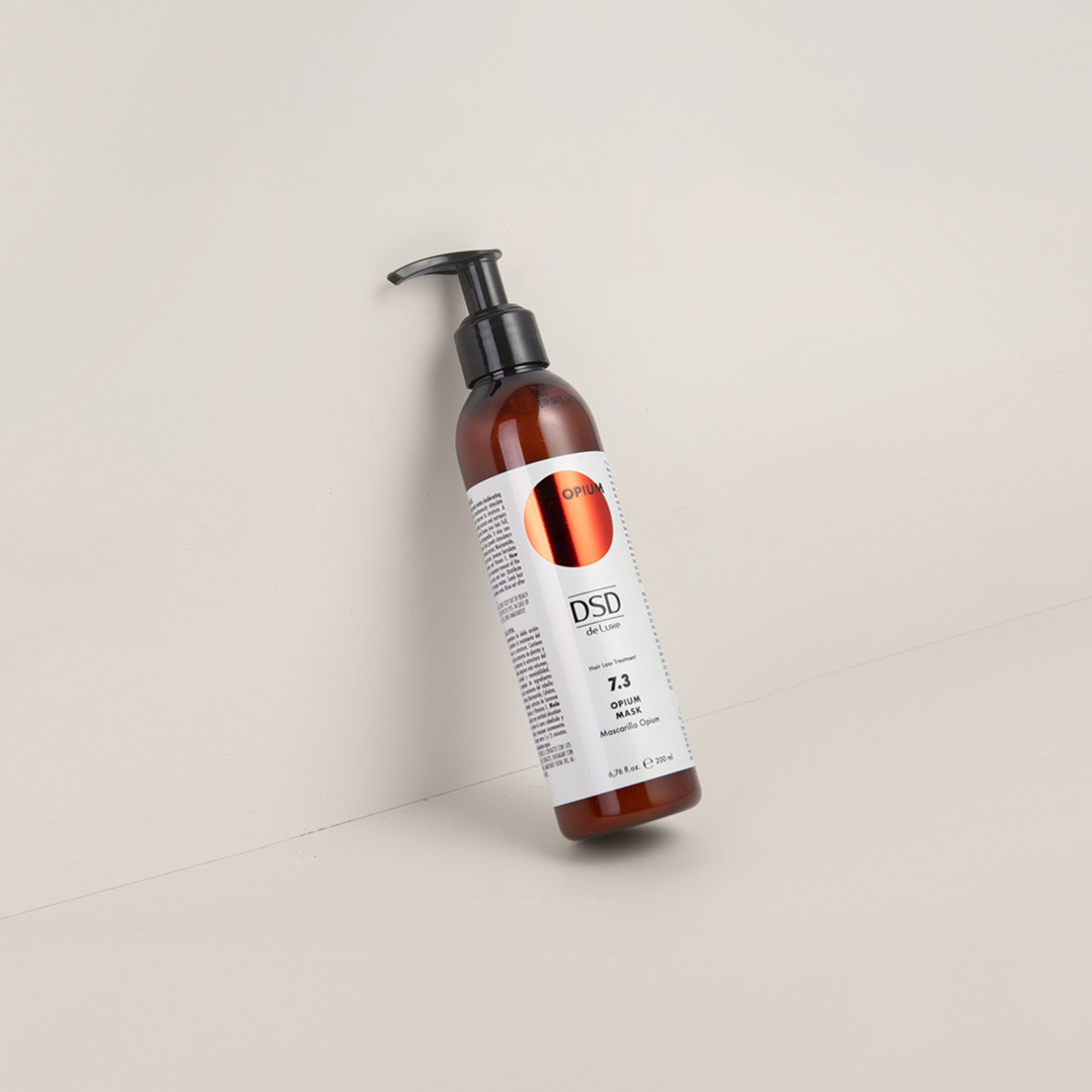 OPIUM MASK. Regenerating double-action mask that helps stimulate hair growth and improve its structure. Stimulating ingredients include caffeine, placenta extract, poppy extract, Serenoa serrulata extract, niacinamide, and adenosine. Its content in shea butter, mango butter, grape seed oil, and panthenol protects and prevents dehydration of the hair fiber, restoring flexibility and natural shine to the hair. The hair acquires more strength, volume, softness, and manageability.