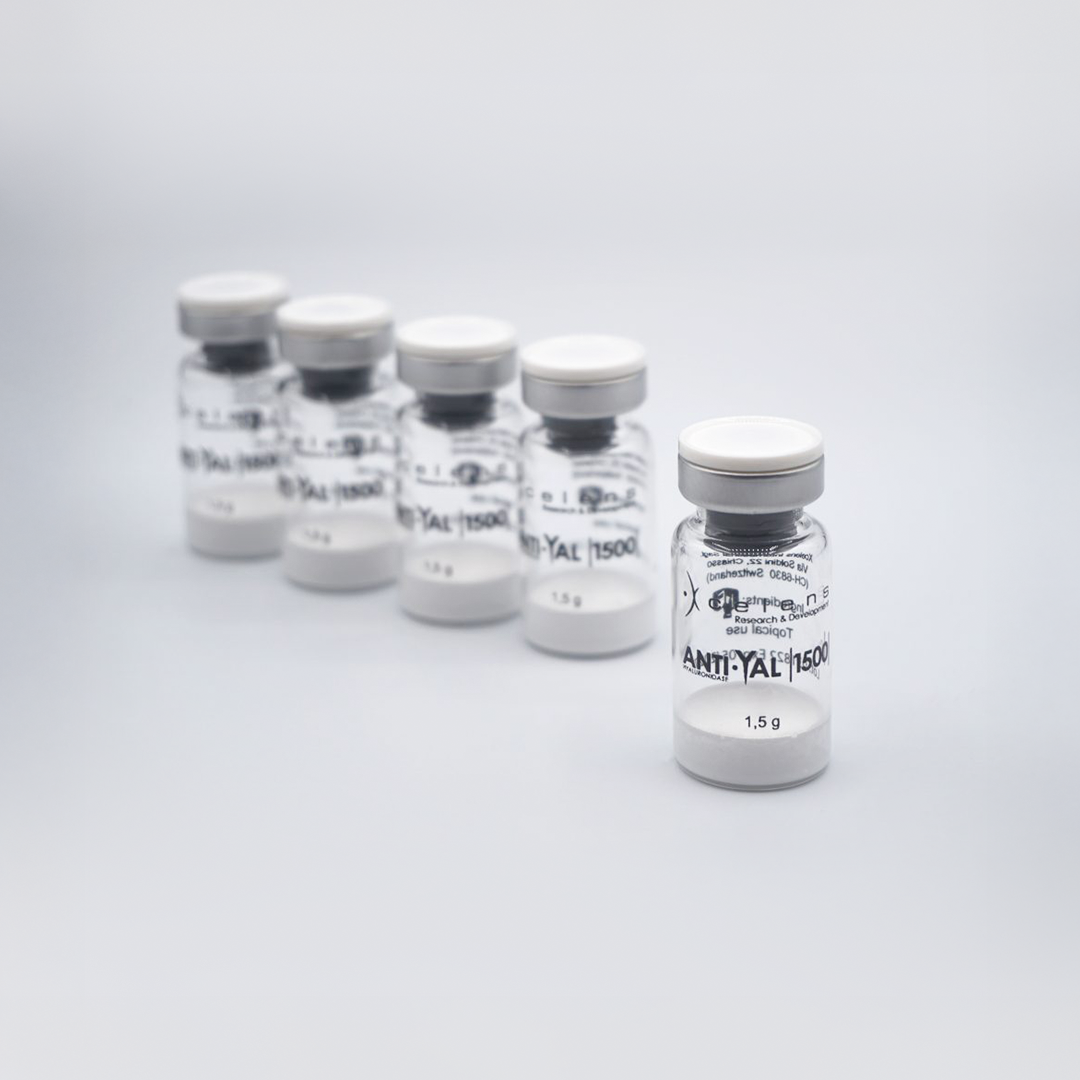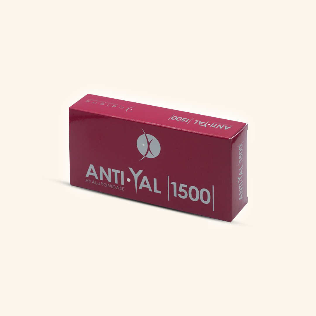 Contains hyaluronidase with posology: 1500 IU dry extract powder/vials to be mixed with 10mL saline solution. Hyaluronidase is an enzyme that catalyze the hydrolysis of certain complex carbohydrates and depolymerize hyaluronic acid leading to its natural breakdown, therefore hyaluronidase is often used In aesthetic medicine, in fact in certain cases the body may consider injected hyaluronic acid, or some impurities of it, as a foreign molecule, so it could induce an immune reaction, such as the formation of granuloma; endogenous hyaluronidase that naturally present in the dermis will sometimes have no access to the ‘HA’ foreign body, so the product will be slowly eliminated through inflammatory reaction and phage cells.