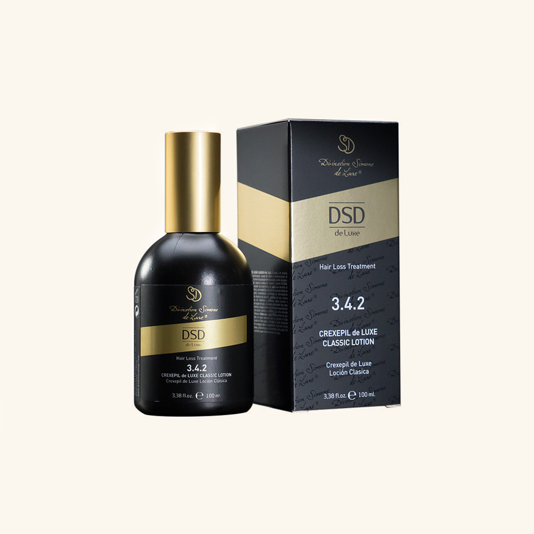 CREXEPIL DE LUXE CLASSIC LOTION helps reduce hair loss and prevent thinning. It contains Cegaba, a new hair growth stimulating agent, a balanced concentration of biogenic stimulators from placenta extract, soybean peptides, inosine (nucleoside), vitamin and mineral complex, purine and pyrimidine bases (nitrogenous bases that are part of nucleic acids), and Açai berry extract, which stands out for its high antioxidant activity. The lotion has a vasodilator effect due to a derivative of nicotinic acid and camphor, it provides a long-lasting sensation of freshness.