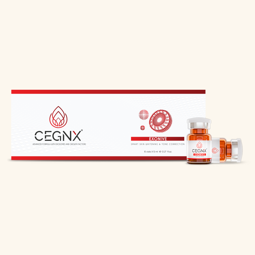 EXONIVE is an advanced whitening solution formulated with advanced exosomes and high-concentration whitening agents. It directly inhibits melanin production to eliminate deep hyperpigmentation, delivering a professional-grade treatment for a uniform and radiant complexion.